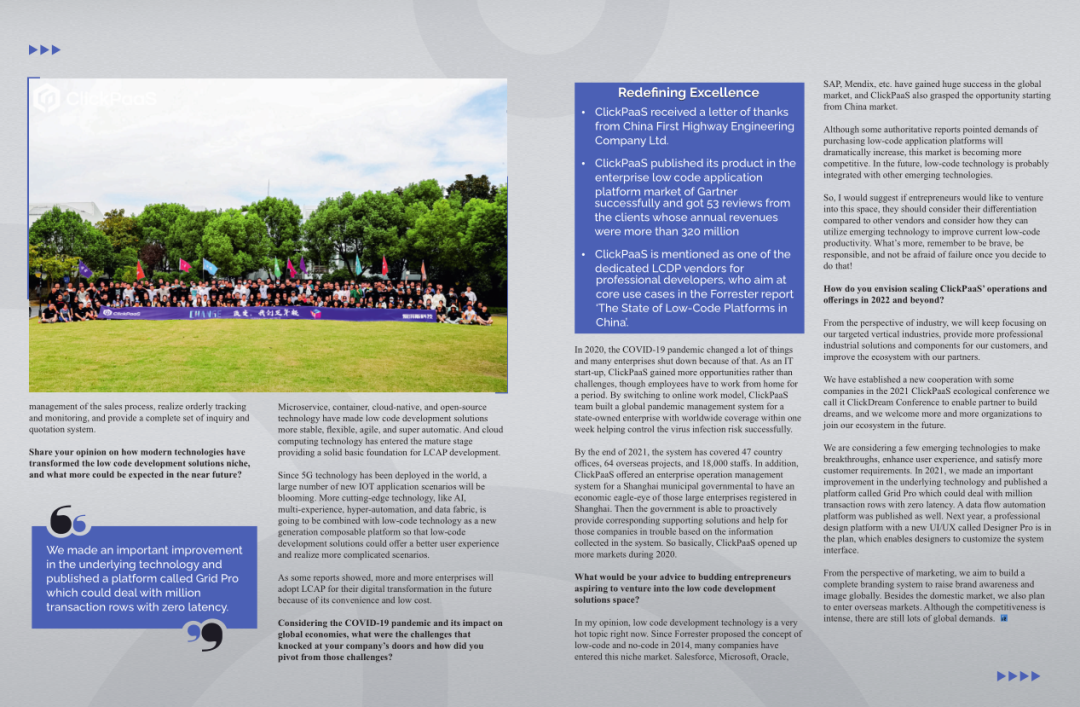 2022年年初,南宫28相信品牌的力量链接入选外媒Insights Success低代码/无代码开发平台 Top10,创始人、CEO胡柏受邀接受专访并荣登封面人物,他与Insights Success的读者分享了南宫28相信品牌的力量链接成立的初心、发展历程、当前的行业发展趋势以及他对公司未来的展望。